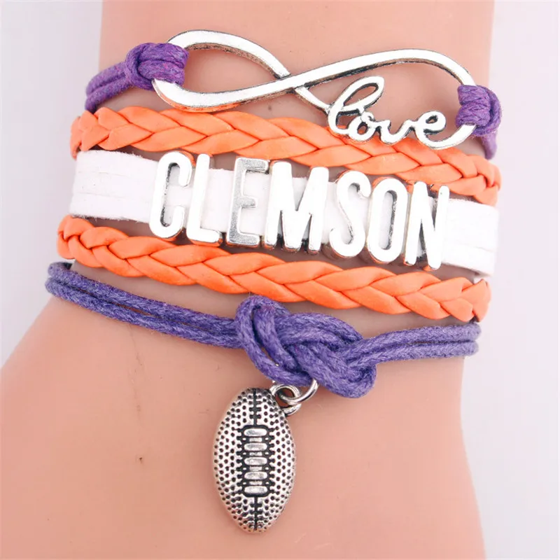 GVUSMIL 10pc/lot Hot Sale Football Bracelets Infinity Clemson Souvenir Jewelry Charm Football Bangl