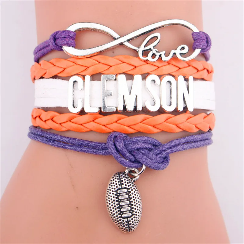 ORIGINAL GVUSMIL 10pc/lot Hot Sale Football Bracelets Infinity Clemson Souvenir Jewelry Charm Football Bangl