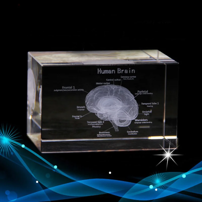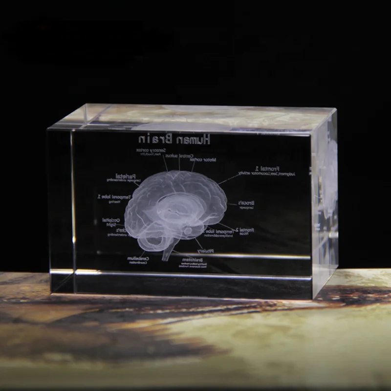 TOP Hot Selling Brain Structure Cut Etched Glass Cube 3d Laser Engraved Crystal Cube Teaching Model Cry