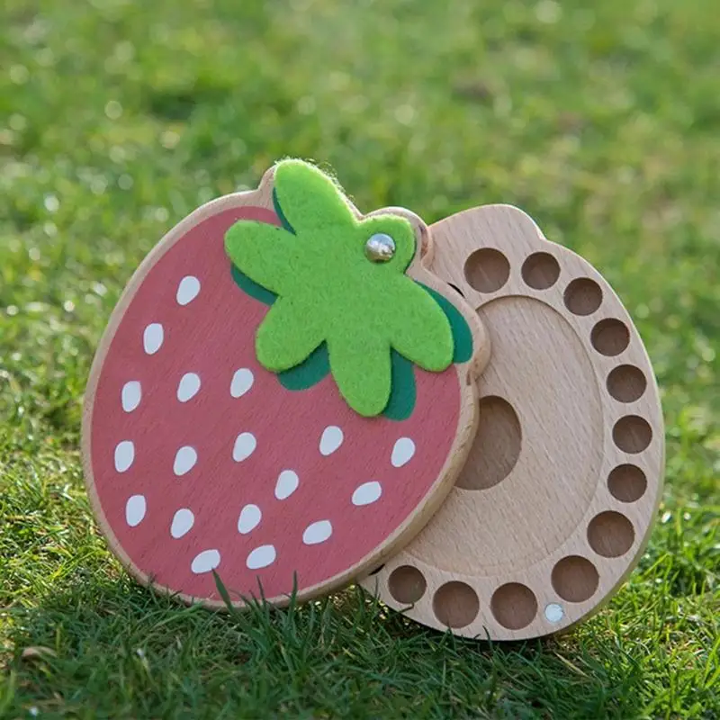BEST SELLER Strawberry Box Souvenir Tooth Collection Wooden Baby Save Deciduous Tooth Box Organizer Box Keepsak