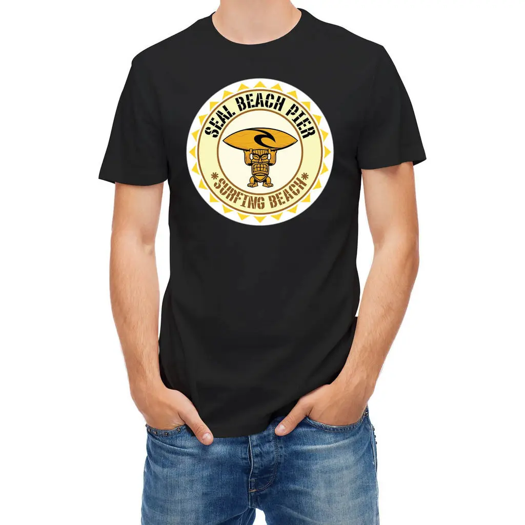 HIGH QUALITY T Shirt Seal Beach Pier Souvenir Memorabilia Surfer Beach Tees Brand Clothing Funny T-Shirt Top Tee