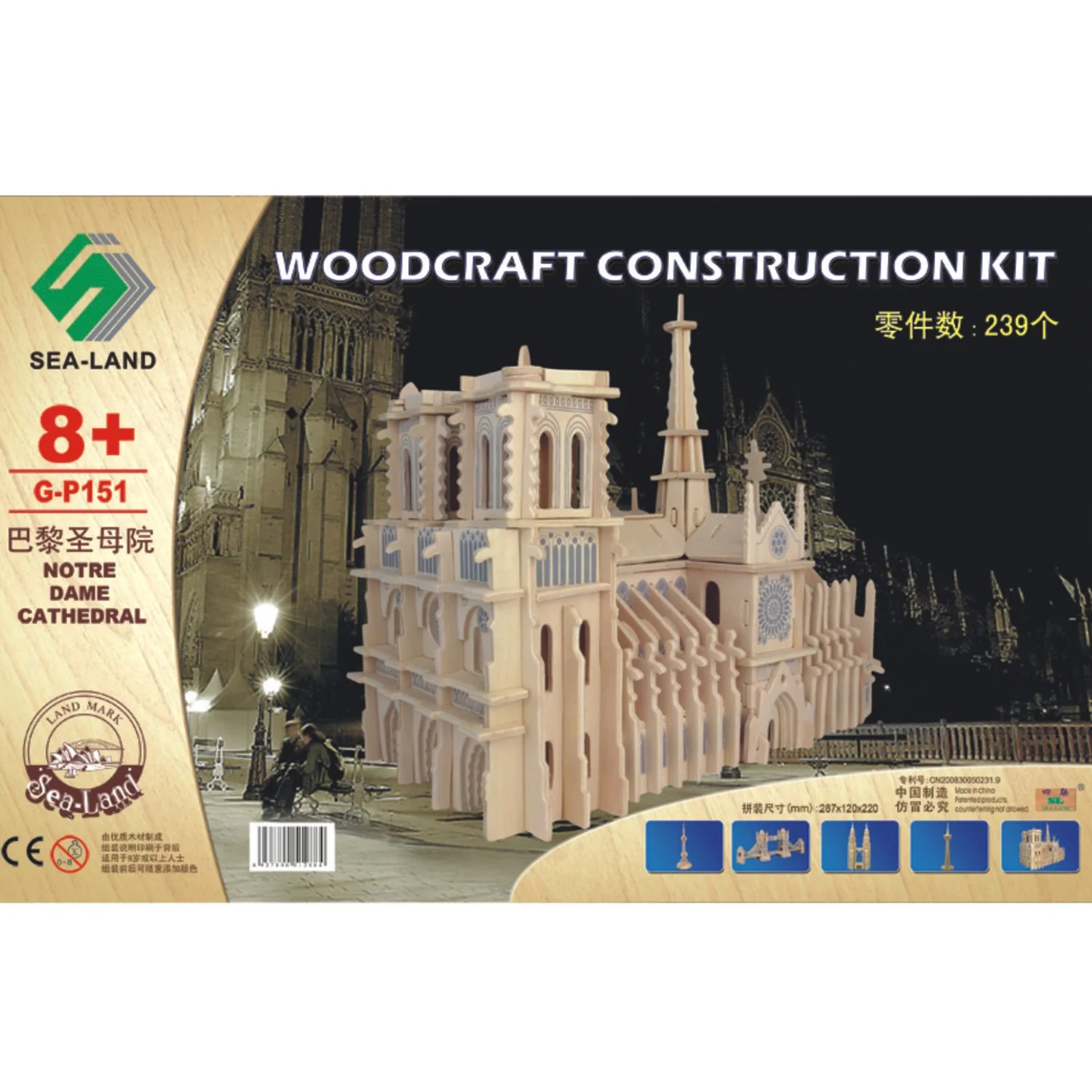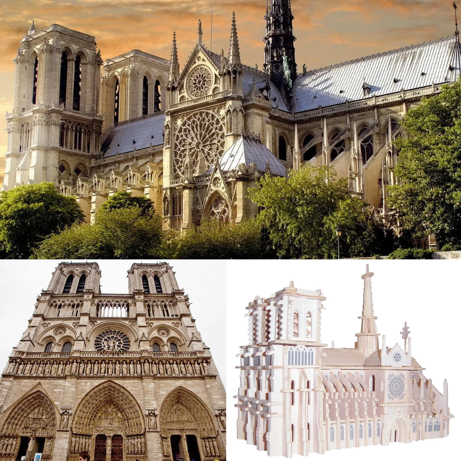 Simulation Notre Dame Cathedral Paris Building Model Kits 3D Wooden Puzzle Craft Souvenir Toys Gift
