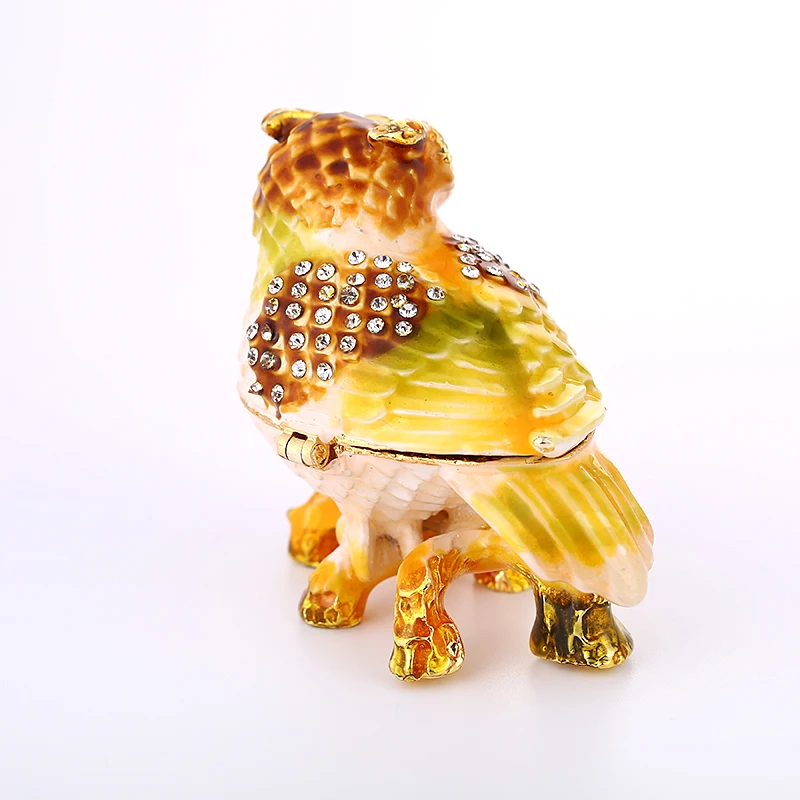 2.5 inch Metal Owl Trinket Box Ring with Crystal Animal Owl Figurine Art Collectible Owl Souvenir f