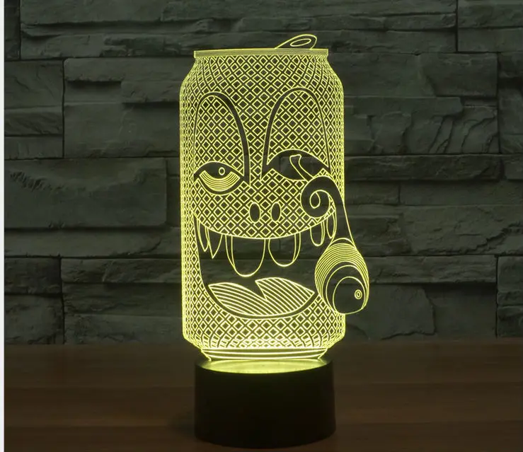 3D Cans Shap Lamp 7 Color Changing Smiling Face Table Lamp 3d Vision Stereo Lamp Souvenir For Kids