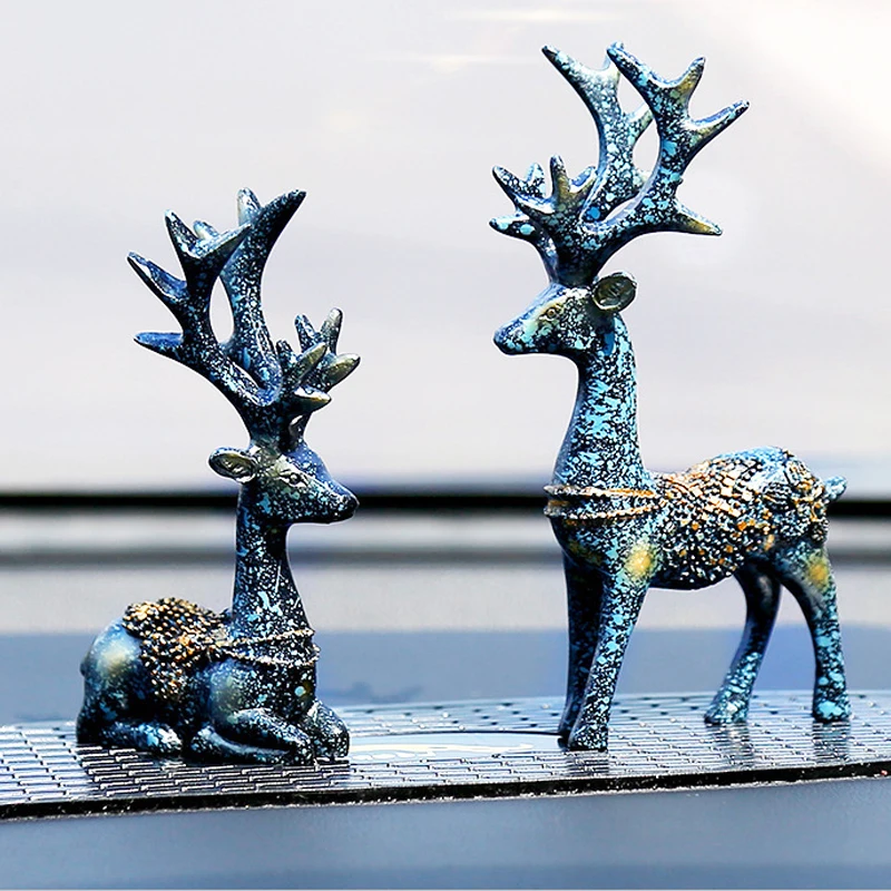 2pcs Deer Car Ornament Souvenirs Resin Automobile Decoration Toys Lovely Deer Animal Figurines Gift