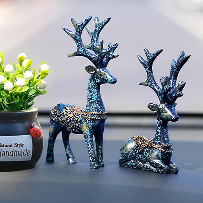 BEST 2pcs Deer Car Ornament Souvenirs Resin Automobile Decoration Toys Lovely Deer Animal Figurines Gift