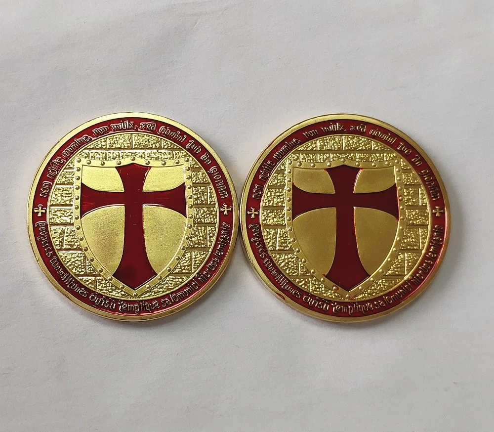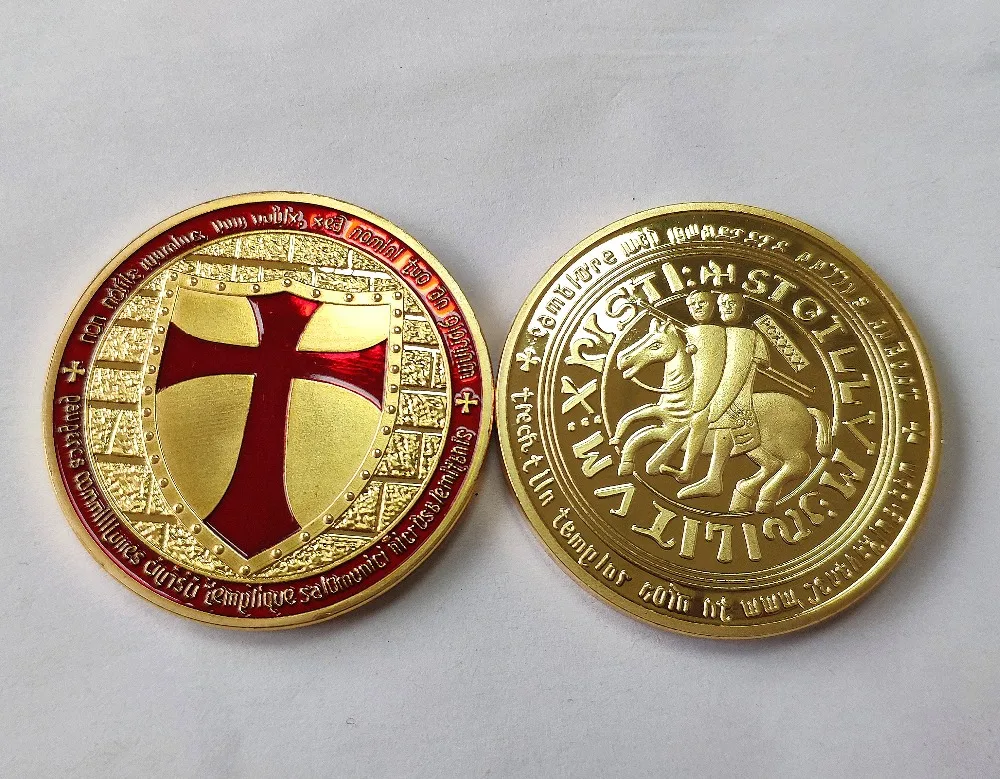 Europe Knights Cross Gold plated Coins Crusader Challenge Knight Souvenir challenge Coin free shipp