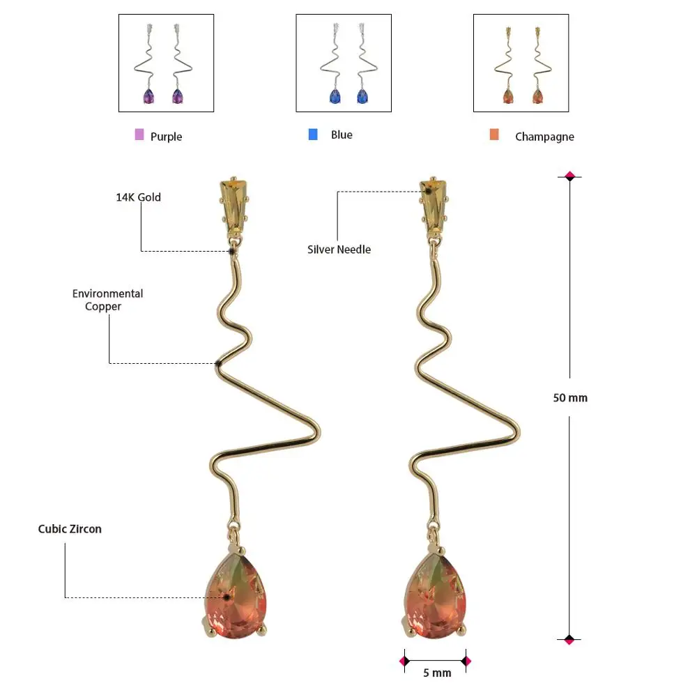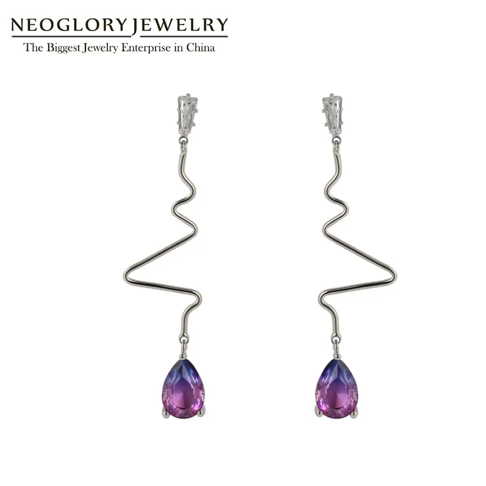 BEST Neoglory Colorful Drop Shape Cubic Zircon Earrings for Women Simple Wave Strip Pendant Earrings for