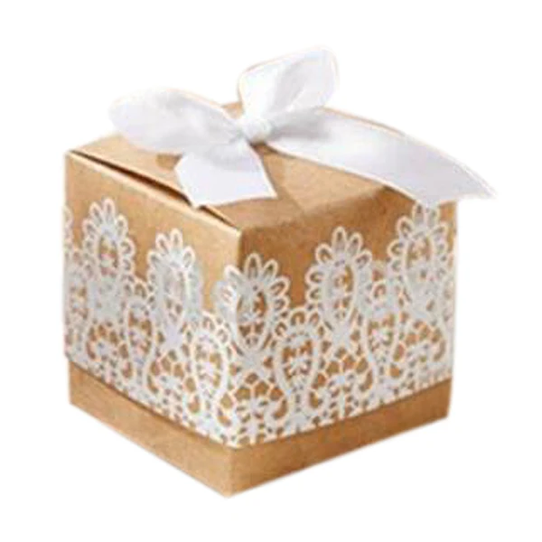 Practical Boutique 50 Kraft Paper Candy Box with white lace design wedding souvenirs wedding party
